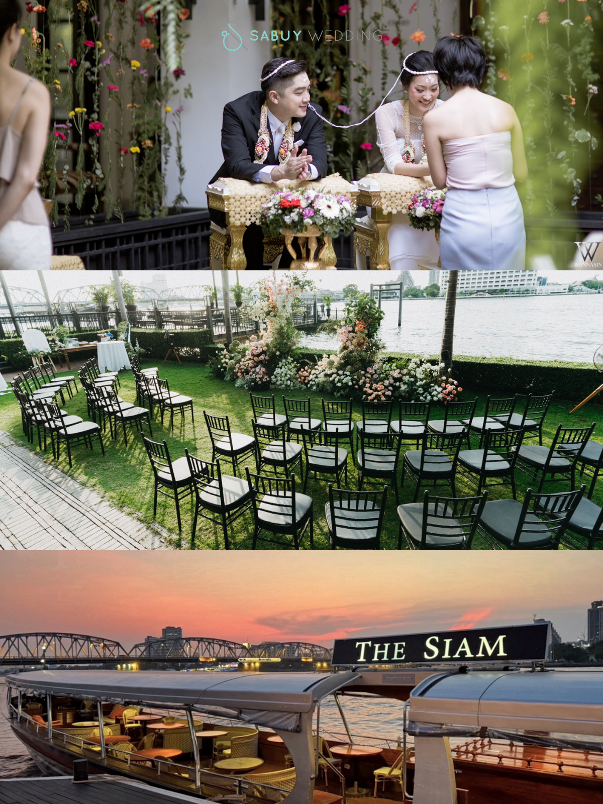 บ่าวสาวที่ชอบงานแต่งเรียบหรู อบอุ่น ริมแม่น้ำ ขอแนะนำ The Siam Hotel เลยค่ะ ที่นี่โดดเด่นด้วยสถาปัตยกรรมอาร์ตเดโคผสมความคลาสสิกแบบไทย ๆ ตกแต่งด้วยของสะสมโบราณ สวยลงตัวสุด ๆ 💍