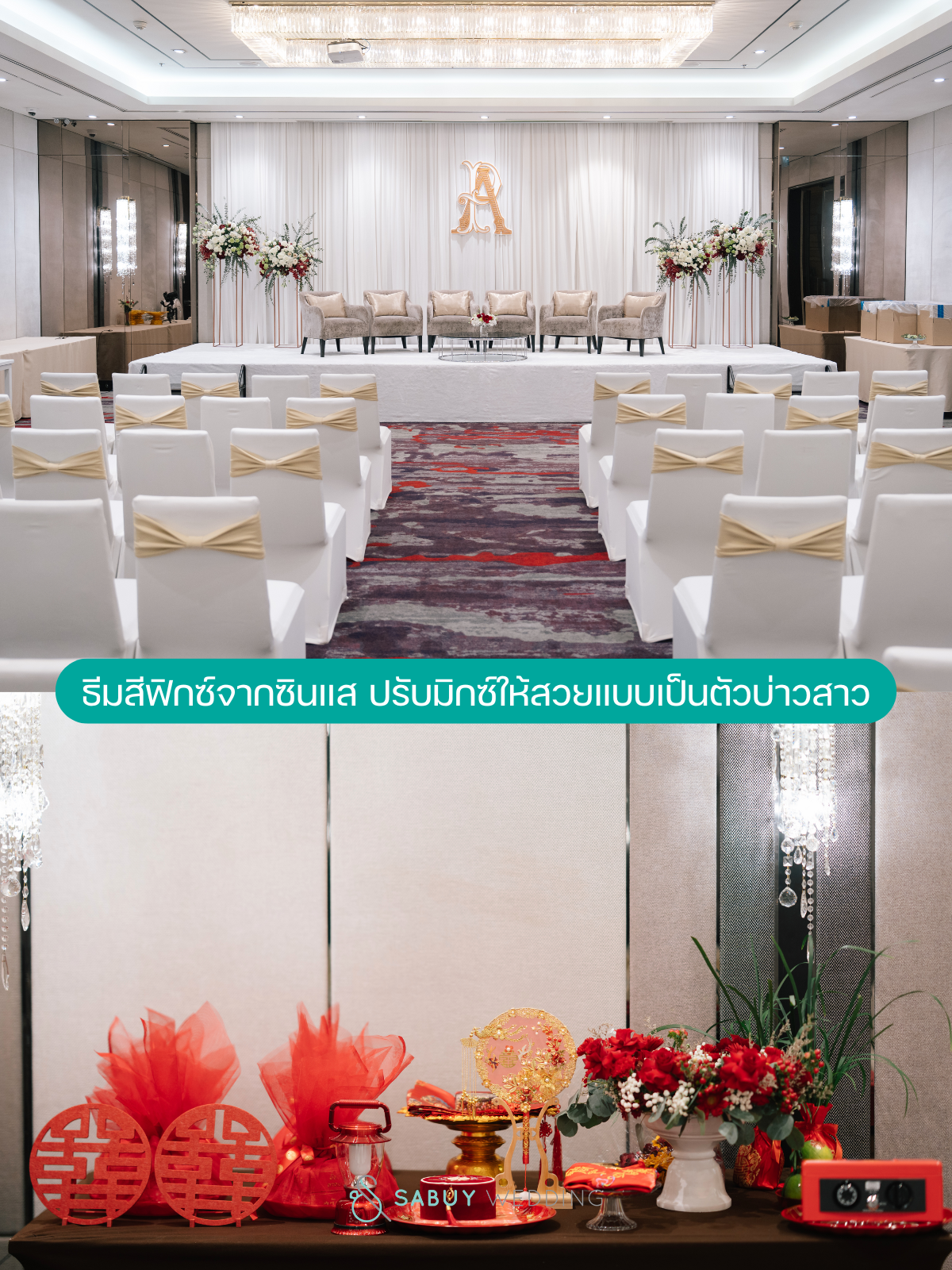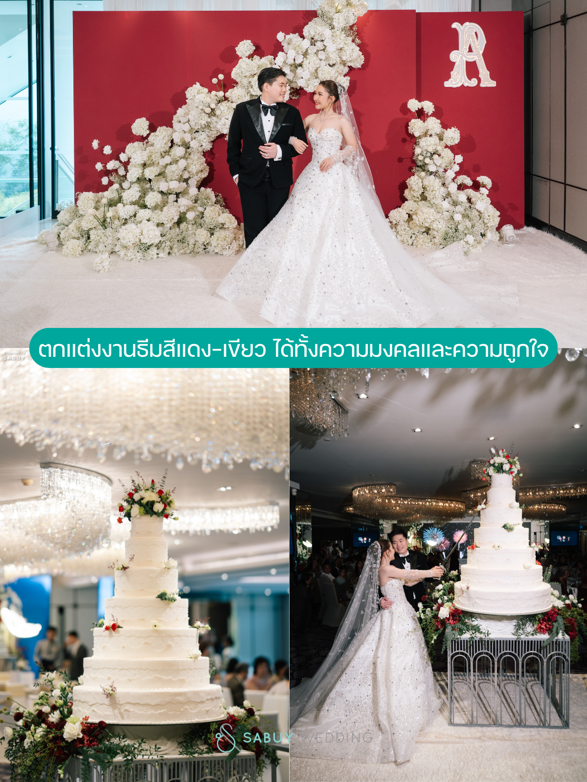 ⭐สีแดงเป็นสีที่ฟิกซ์จากซินแสเพื่อความสิริมงคล แต่เจ้าสาวชอบสีเขียว การตกแต่งจึงเป็นธีมแดงเขียวแซมทองครีม ฟีลคริสต์มาสค่ะ🎈
