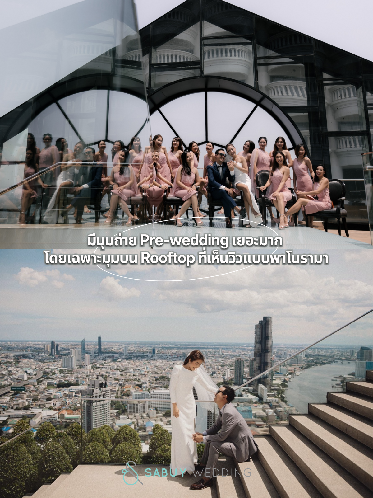 - มีมุมไฮไลต์ให้ถ่าย Pre-wedding สวย ๆ โดยเฉพาะโซน Sirocco Restaurant บริเวณ Rooftop ชั้น 63 ที่มองเห็นวิวได้ไกลแบบพาโนรามา