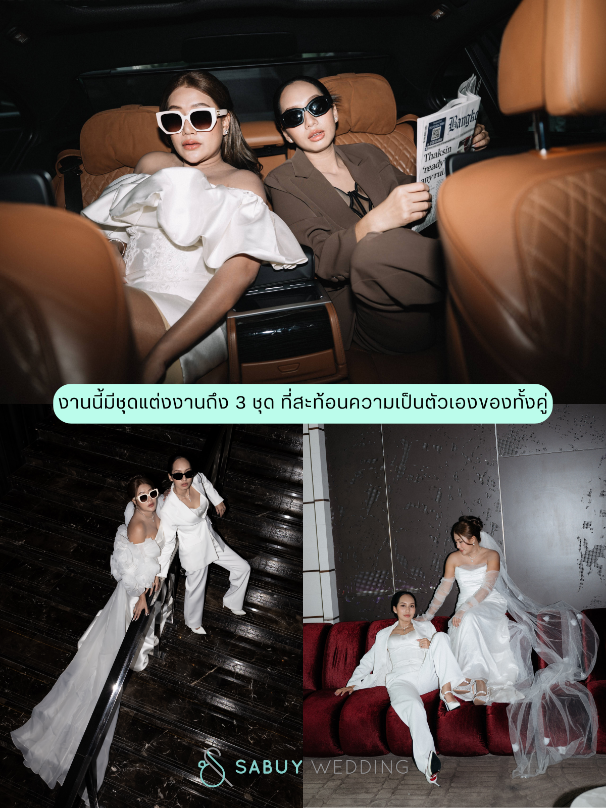 - อีกหนึ่งความพิเศษคือ งานนี้มีชุดแต่งงานถึง 3 ชุด 👗✨ที่ตั้งใจเลือกให้สะท้อนตัวตนแบบสุด ๆ