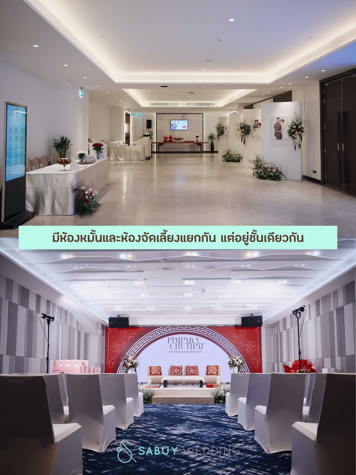 - ห้องหมั้นกับห้องจัดเลี้ยงแยกกันชัดเจนแต่ยังอยู่ชั้นเดียวกัน