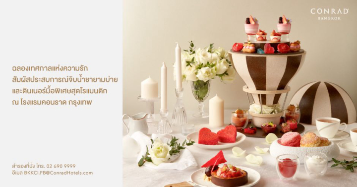 จูงมือคู่รักของคุณไปฉลองเทศกาลแห่งความรักในวันวาเลนไทน์นี้ ด้วยมื้ออาหารสุดโรแมนติก 3 แบบ 3 สไตล์ ที่ Conrad Bangkok (โรงแรมคอนราด กรุงเทพฯ) ณ ห้องอาหาร 'ซิตี้ เทอร์เรซ' (City Terrace) ที่จัดขึ้นบริเวณริมสระน้ำ และห้องอาหารญี่ปุ่น 'คิซาระ' (KiSara) ที่นำเสนอชุดอาหารญี่ปุ่น ซึ่งรังสรรค์ขึ้นจากวัตถุดิบชั้นเลิศ ตลอดจนจิบน้ำชายามบ่าย พร้อมของว่างและขนมหวานแสนอร่อย ภายใต้คอนเซปต์ “Around the World” ท่ามกลางบรรยากาศสุดคลาสสิก ณ 'ดิโพลแมท บาร์' (Diplomat Bar) ช่วยเติมเต็มความสุขให้กับคนที่คุณรัก