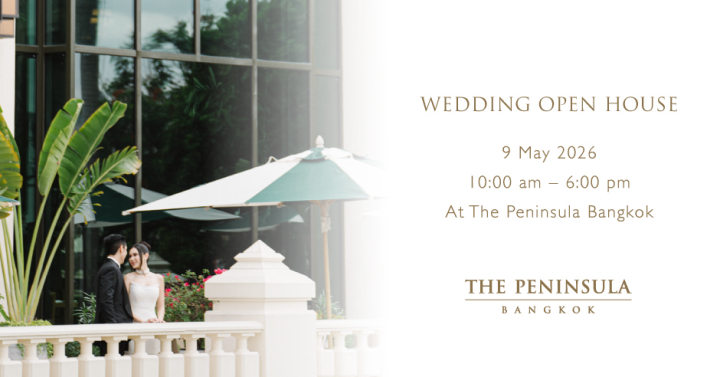 โรงแรมเพนนินซูลา กรุงเทพฯ ขอเชิญคู่รักที่กำลังวางแผนจัดงานแต่งงาน เข้าร่วมงาน The Peninsula Wedding Open House ในวันอาทิตย์ที่ 9 พฤษภาคม 2569 เวลา 10.00 น. - 18.00 น.